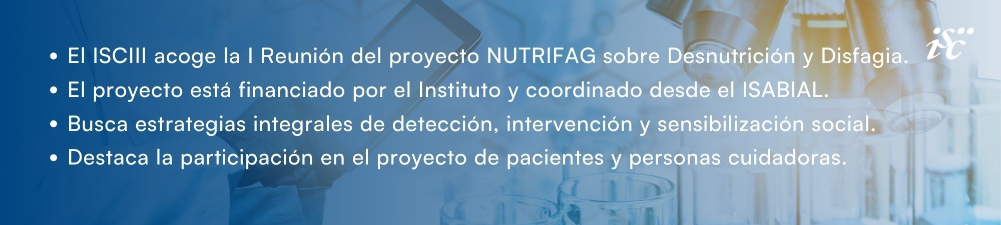El Instituto de Salud Carlos III (ISCIII) ha acogido en su Campus de Chamartín, en Madrid, las I Jornadas sobre Desnutrición y Disfagia: Estrategias integrales para profesionales de salud y ciudadanía (ver emisión completo en Youtube ISCIII), organizadas en el marco del Proyecto NUTRIFAG, financiado por el ISCIII y cofinanciado por la Unión Europea.
