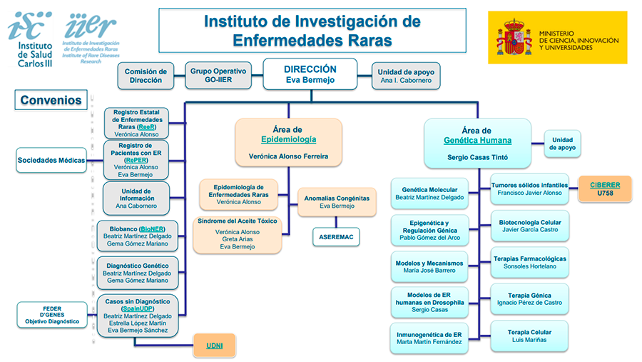 El Instituto de Investigación de Enfermedades Raras (IIER), forma parte de la estructura del Instituto de Salud Carlos III (ISCIII), dependiendo de la Subdirección General de Servicios Aplicados, Formación e Investigación. Colabora con el Ministerio de Sanidad, Consumo y Bienestar Social (MSCBS) en el desarrollo del Registro Estatal de Enfermedades Raras y en la Estrategia Nacional para estas enfermedades.