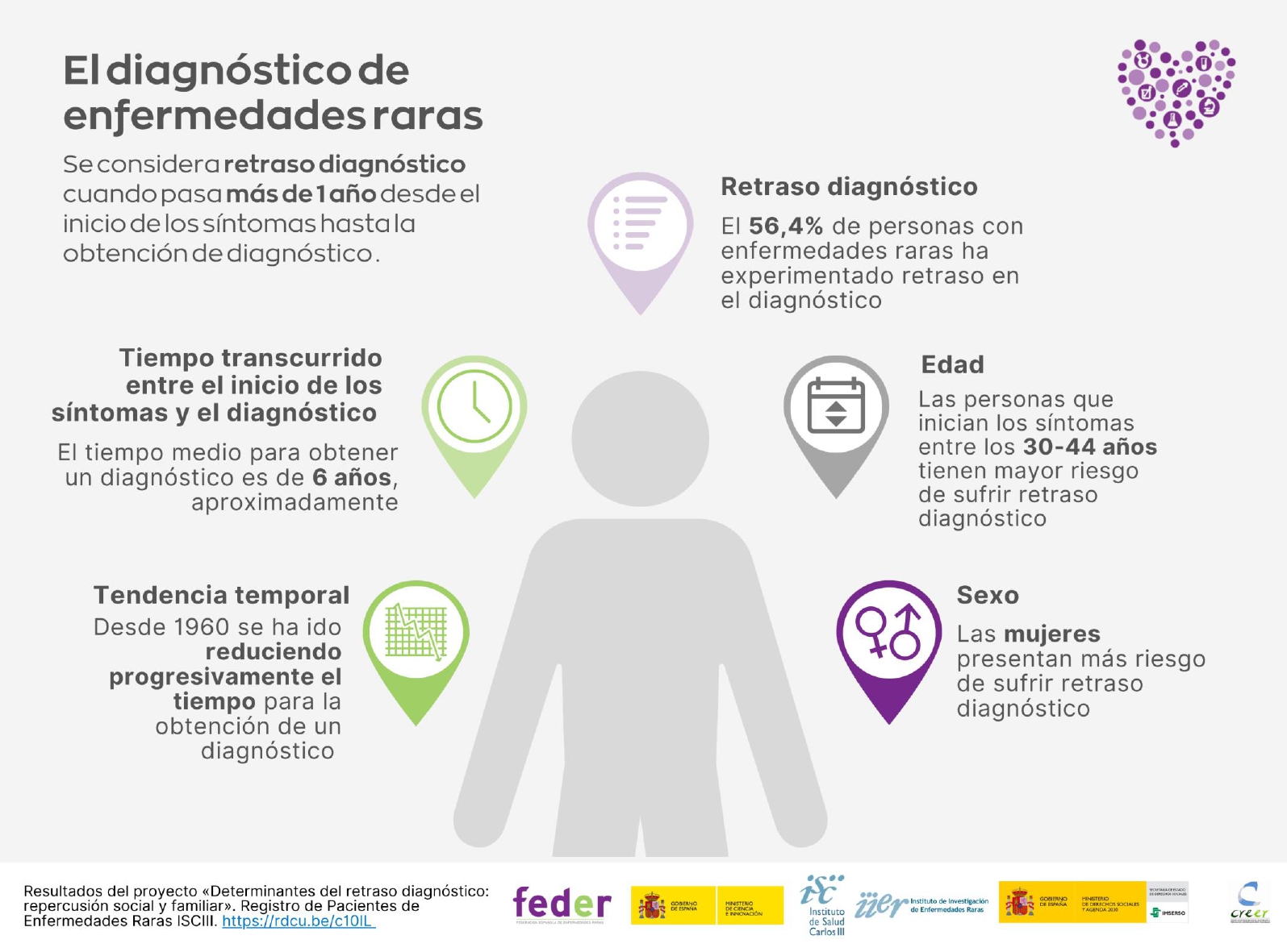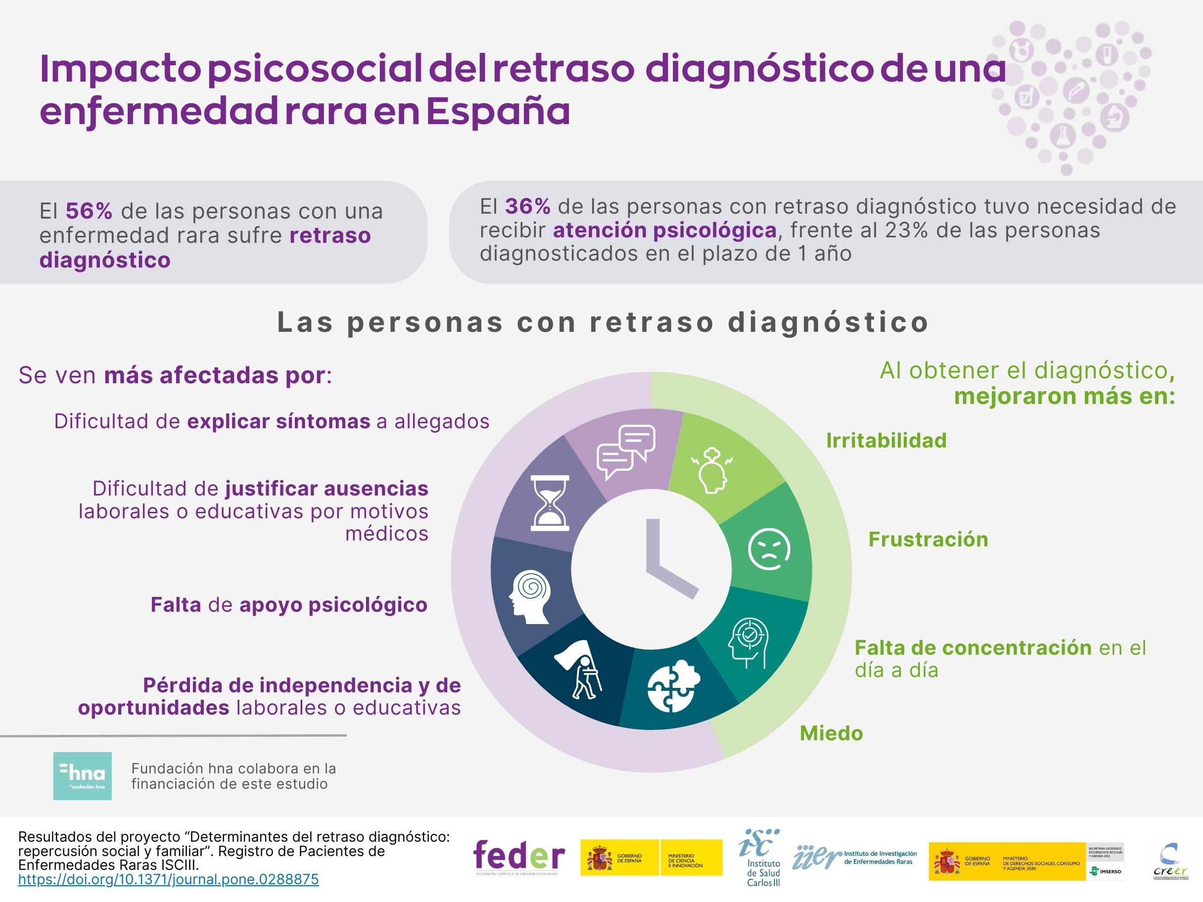 Se considera un retraso diagnóstico cuando pasa más de 1 año desde el inicio de los síntomas hasta la obtención del diagnóstico. En España, el 56,4% de las personas con enfermedades raras lo ha sufrido, siendo el tiempo medio para obtener el diagnóstico superior a los 6 años. Sin embargo, se ha ido reduciendo desde la década de los 60.